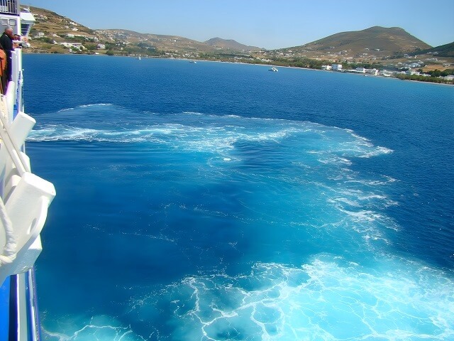 Do odległych plaż Santorini i innych wysp archipelagu turyści są przewożeni przez liczne promy. Na przykład, do sąsiedniej Thirassii można dostać się w 25 minut, a 5-godzinna wycieczka po Nea Kameni z wizytą na drzemiącym wulkanie kosztuje od 50 do 60 euro od osoby.