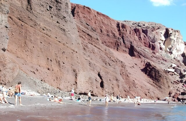 Dzięki wulkanicznemu dziedzictwu Santorini i bogatej mineralizacji miejscowych gleb, piasek na wybrzeżu przybrał całą gamę odcieni: od delikatnego mlecznego po różowy, czerwony, a nawet czarny.