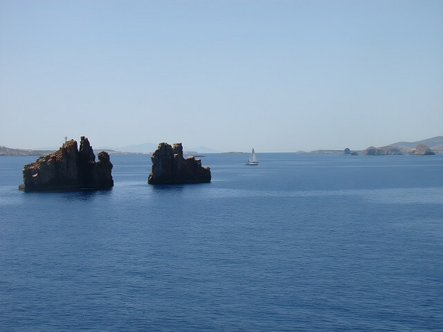 Po zwiedzeniu Santorini warto udać się na inne wyspy archipelagu — Nea Kameni i Palea Kameni. Na pierwszej znajduje się drzemiący od 1950 roku wulkan, a na drugiej gorące siarkowe źródła, kąpiel w których jest korzystna dla zdrowia.